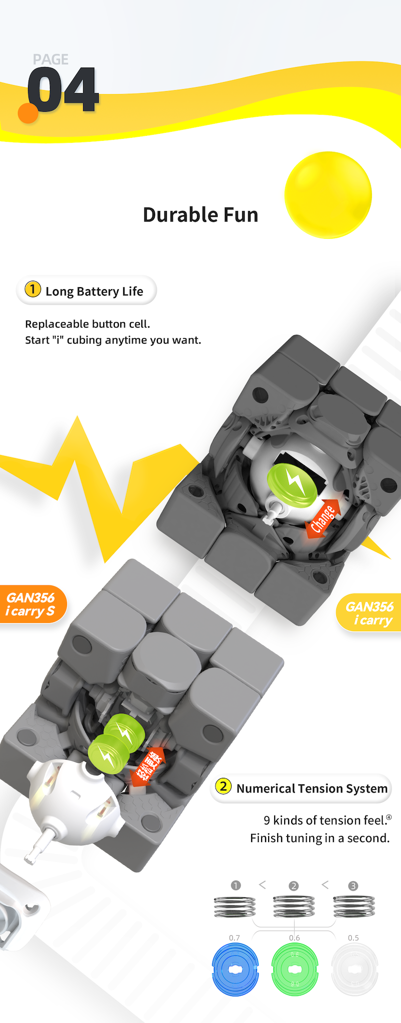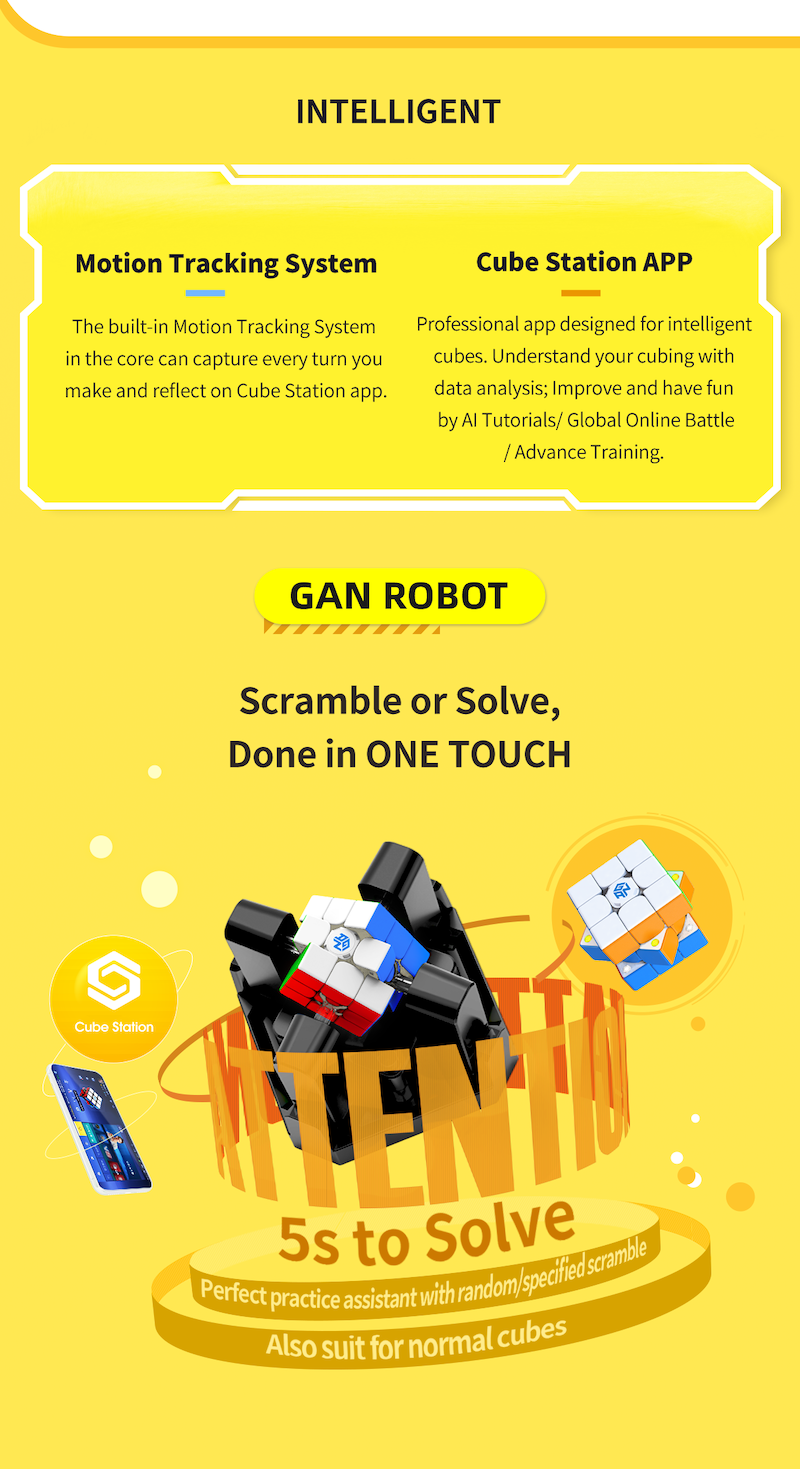 GAN 356 I Carry er en af de mest efterspurgte cubes nogensinde, og det er der bestemt også god grund til. 356 I Carry er en Smart Cube, som kan tilkobles appen "CUBE STATION", som giver mulighed for at dyste mod andre speedcubere fra hele verden. Smart cubes er fremtidens magic cubes, da de skaber et fælles online mødested på tværs af kontinenterne, og med GANs fantastiske design er Carry ikke blot blandt de bedste smart cubes, men også blandt markedets bedste 3x3 speedcubes. Hvis du har lyst til at følge speedcubing gennem døren til fremtiden og ind i et globalt fællesskab af online cubere, så skal det være med GAN 356I Carry.