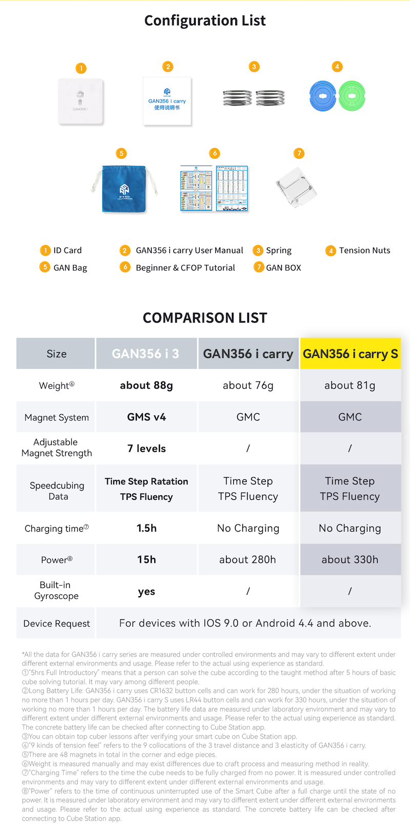 S-versionen af GAN 356 I Carry er en nyere model med 50 timers forbedret levetid per batteri.
